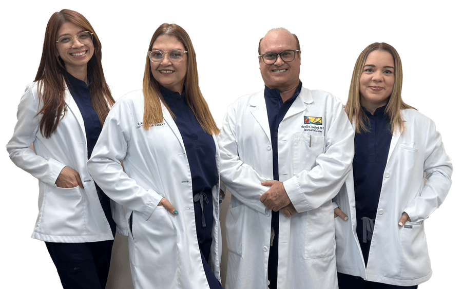 El Dr. Harold Stoddard, la Dra. Dinamarca Rodríguez, y la Dra. Lin Chu Joy conforman nuestro equipo de medicina interna, combinando su experiencia médica con un enfoque personalizado. Con más de 25 años de práctica en la medicina, se mantienen al día asistiendo a seminarios y programas de educación continua para ofrecer tratamientos avanzados y efectivos. Ofrecen soluciones seguras y efectivas para la pérdida de peso y el embellecimiento estético, dedicados a mejorar tu salud y ayudarte a alcanzar tus metas cosméticas.